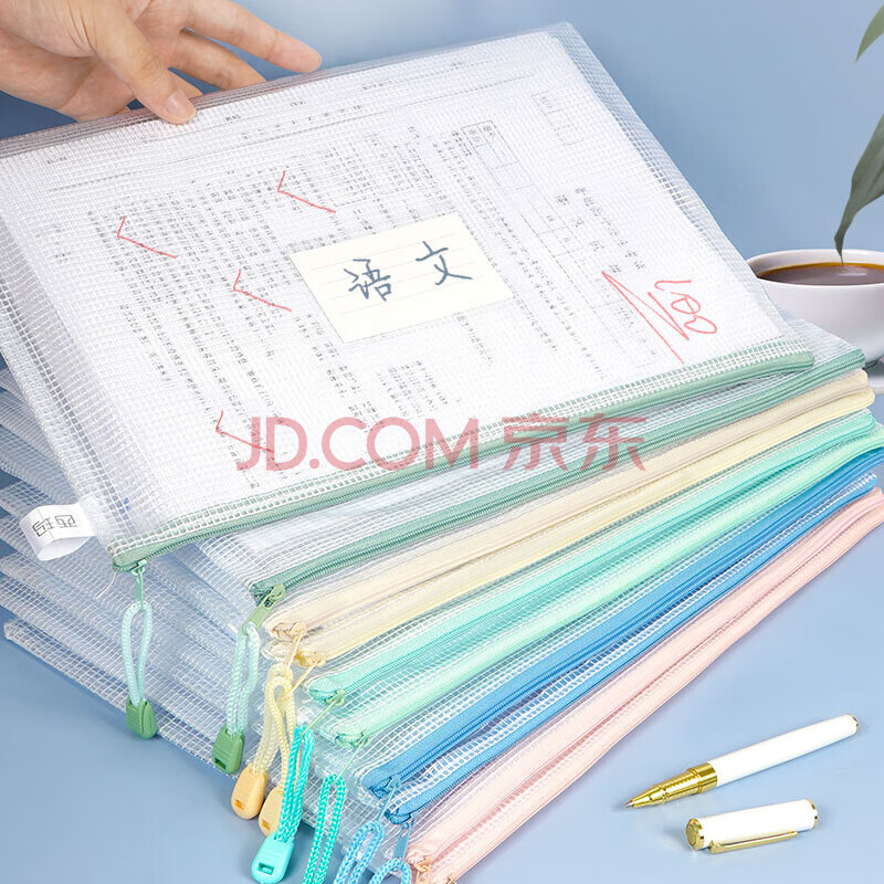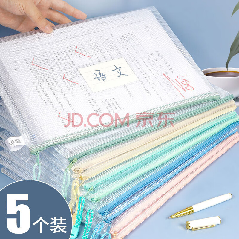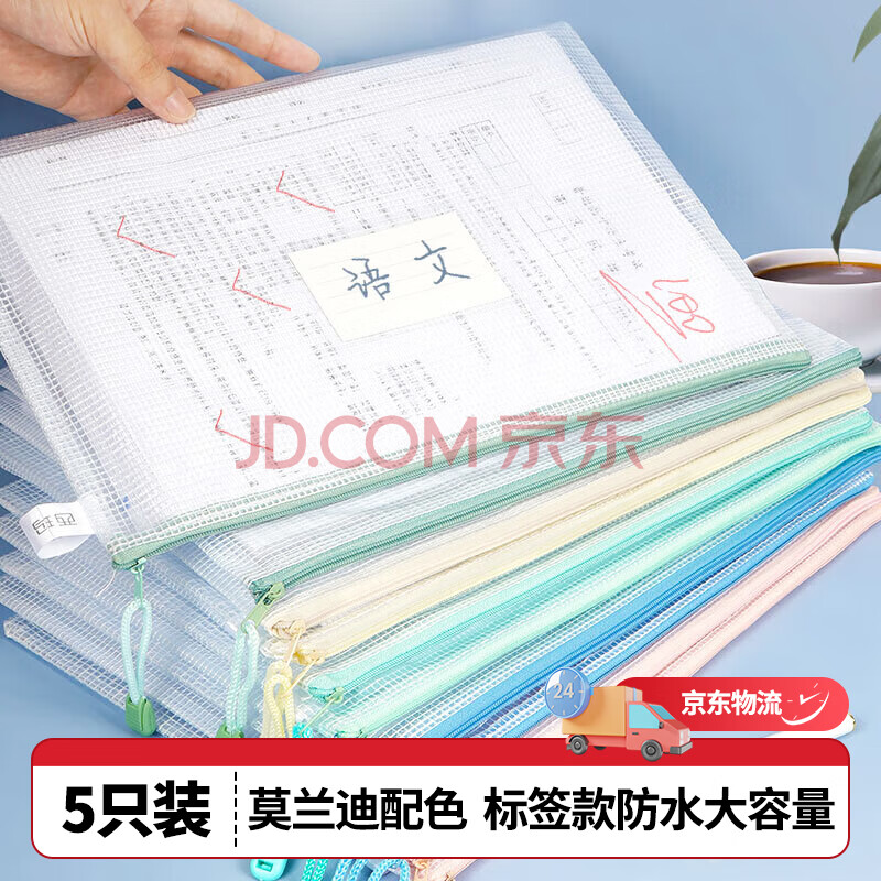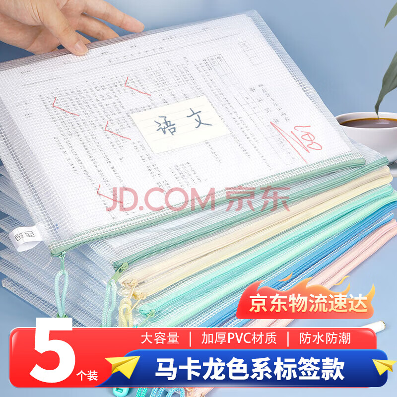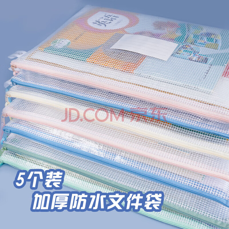 商品相册:西玛(SIMAA)5只A4标签款防水网格拉链袋 资料袋小学生科目分类文件袋 马卡龙色系 6023第1张/共9