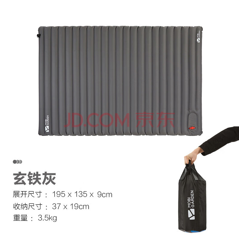 商品相册:牧高笛(MOBIGARDEN)防潮垫 户外露营加宽加厚折叠充气双人气垫床 NX20663005 玄铁灰第