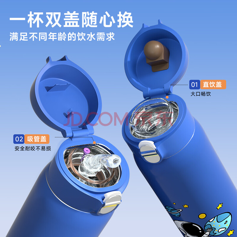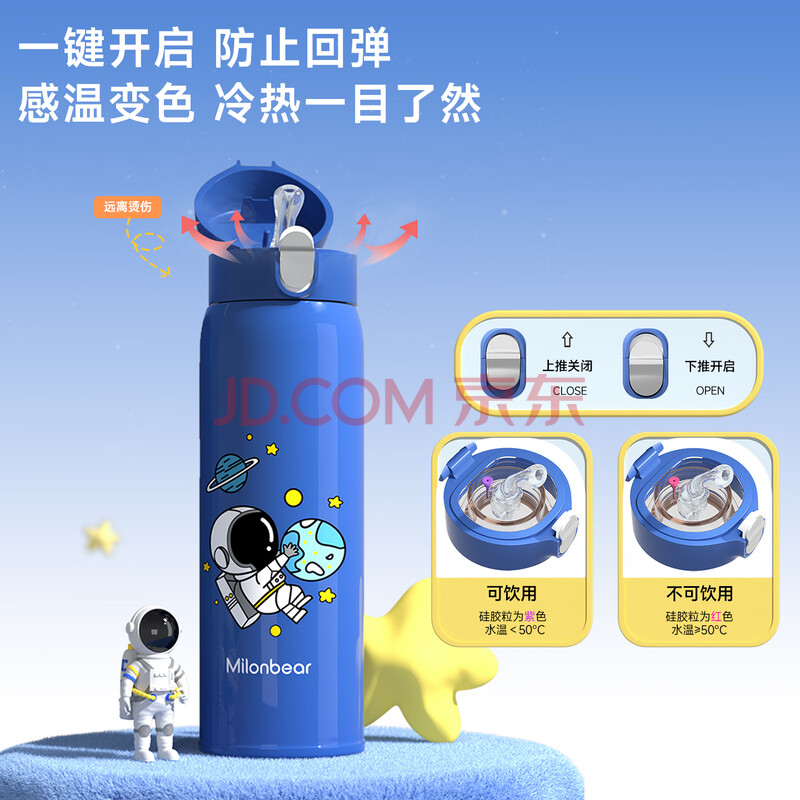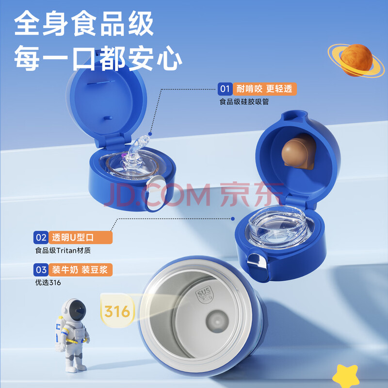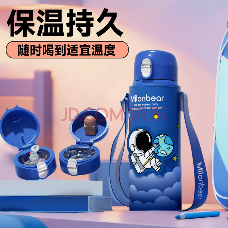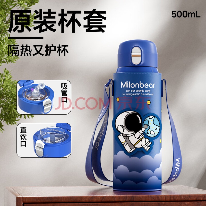 商品相册:米仑熊儿童保温杯316食品级不锈钢真空吸管直饮两用小学生上学水杯男孩第