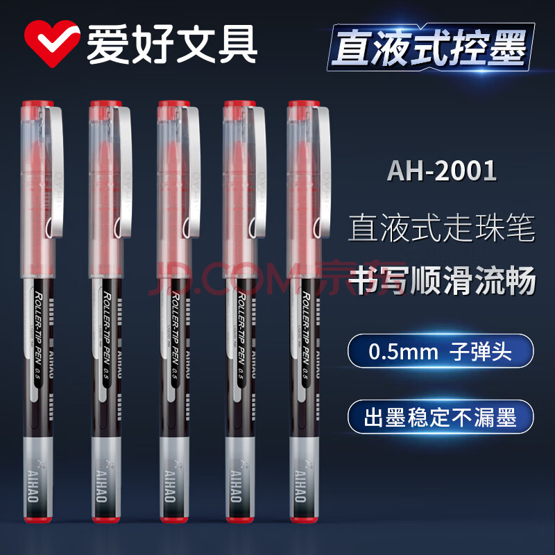 商品相册:爱好(AIHAO)0.5MM签字笔子弹头直液式走珠签字笔商务办公专用红色签字笔12支 2001第