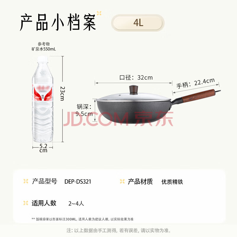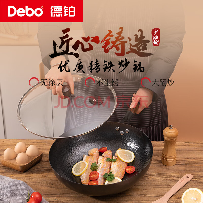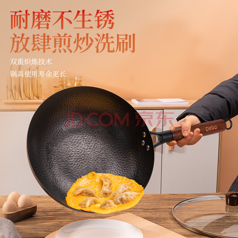 商品相册:Debo德铂炒锅铁锅炒菜锅32cm不粘不挑锅铲可立盖通用灶具 梅里萨第