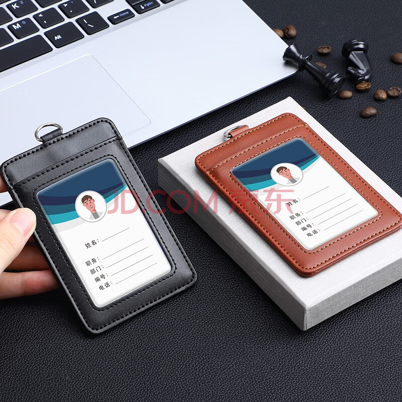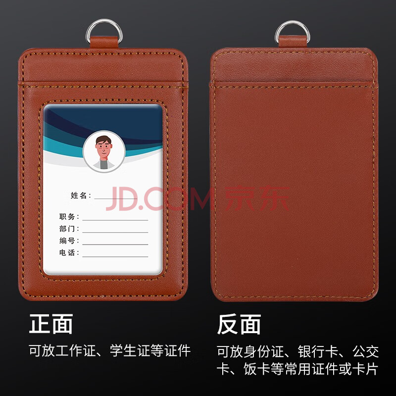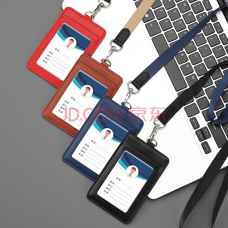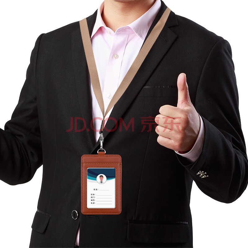 商品相册:嘉然恒 真皮工作牌企业员工胸牌证件卡套带收纳卡位挂脖牌会议出入证工作证套牛皮材质可定制 棕色竖款第