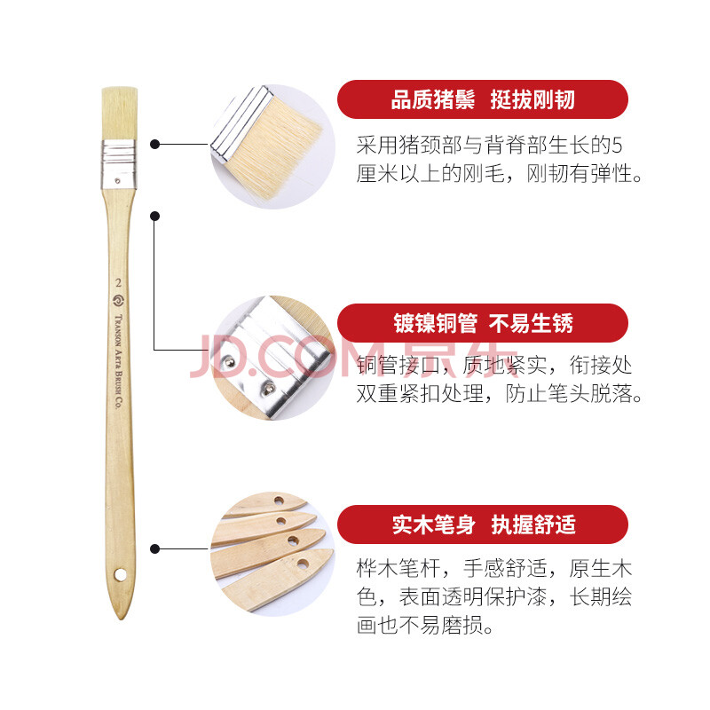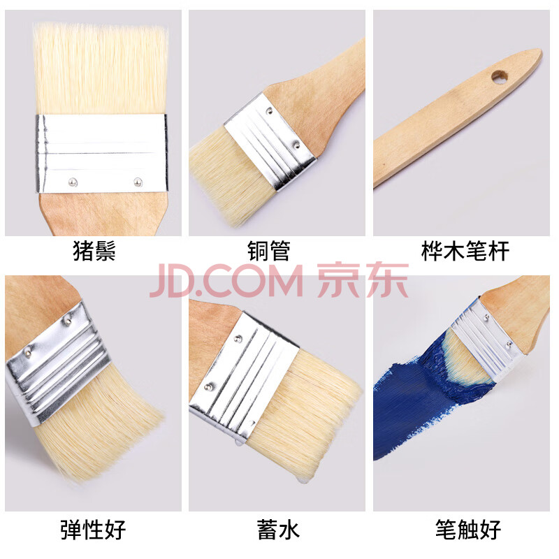 商品相册:中盛画材 3#水粉油画丙烯颜料水彩画笔套装笔刷猪鬃手绘画墙绘板刷排刷底纹美术彩绘色彩全套排笔单支刷子美术写生第