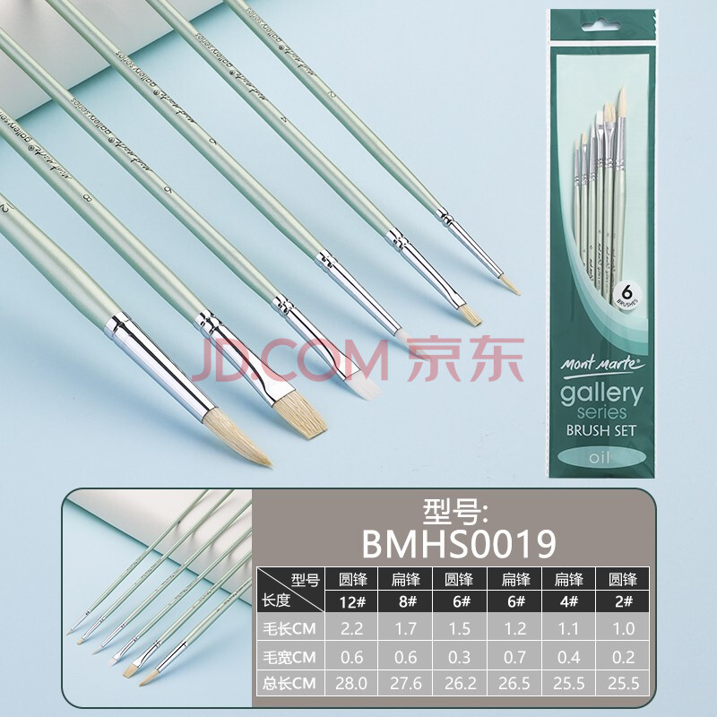 商品相册:蒙玛特(Mont Marte)尼龙画笔6支装 美术画画笔油画颜料画笔丙烯水粉绘画笔勾线笔学生水粉笔套装V BMHS0019第