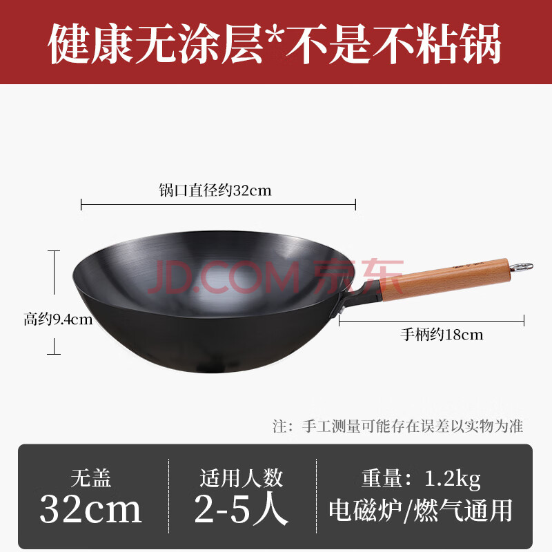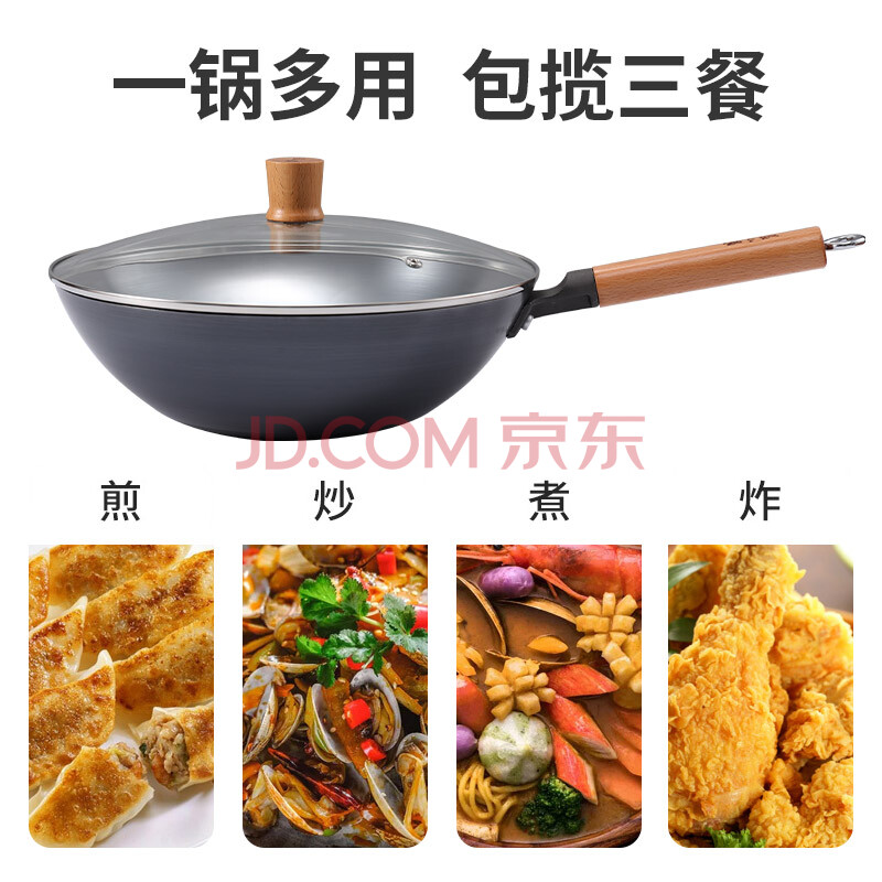 商品相册:张小泉精铁旋压无涂层全灶具通用炒锅铁锅炒菜锅32cm C30650100第