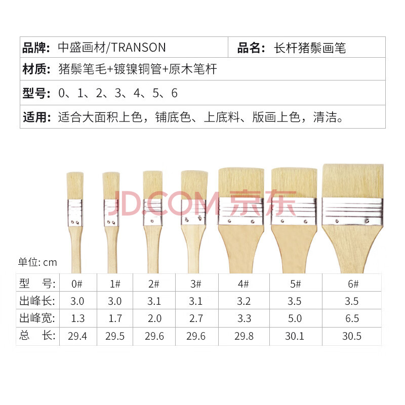 商品相册:中盛画材 7支套装水粉油画丙烯颜料水彩画笔套装笔刷猪鬃手绘画墙绘板刷排刷底纹美术彩绘色彩全套排笔刷子美术写生第