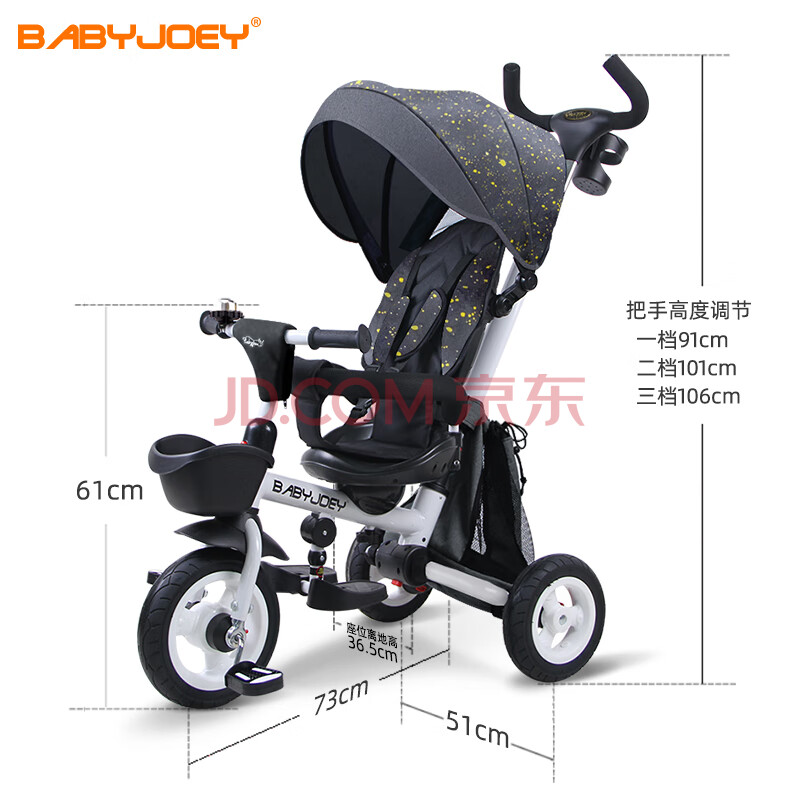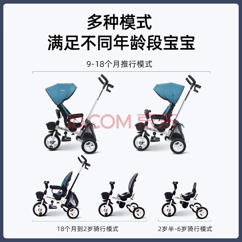 商品相册:Babyjoey英国儿童三轮脚踏车折叠宝宝1-5岁手推车自行车骑士TT56极光北斗第1张/共9