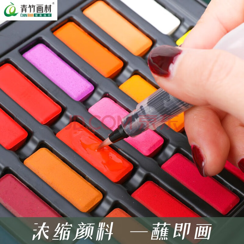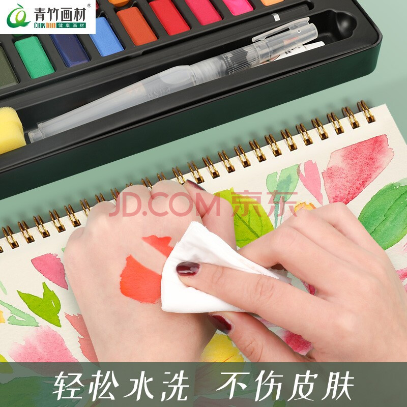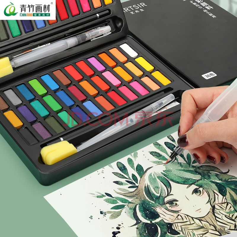 商品相册:青竹画材(CHINJOO)固体水彩颜料套装36色14件套初学者绘画工具学生美术用品便携画笔毕业国庆出游礼物美术写生第