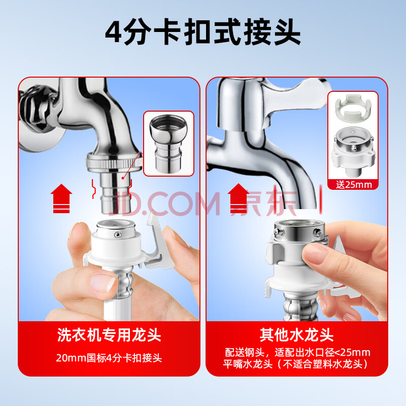 商品相册:宜百利 洗衣机进水管加长接头上水管滚筒波轮全自动海尔松下荣事达通用卡扣连接软管延长管配件2米7008第