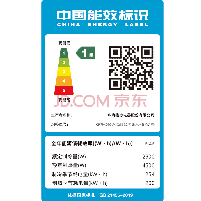 商品相册:格力 新能效 大1匹 冷静王+ 新一级能效 变频冷暖空调智能挂机 KFR-26GW/(26562)FNhAa-B1(线下同款)第