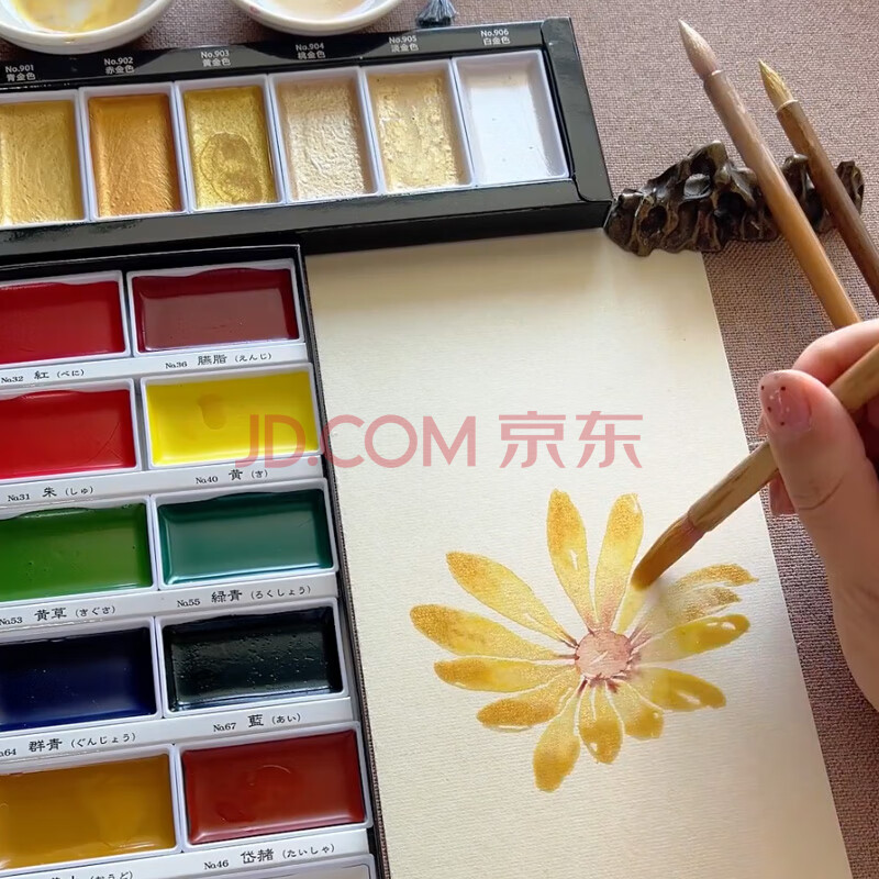 商品相册:吴竹(KURETAKE)颜彩耽美固体水彩颜料专业美术幻彩色水彩颜料初学者水墨画古风墨彩工笔画金粉6色MC20SC/6V第