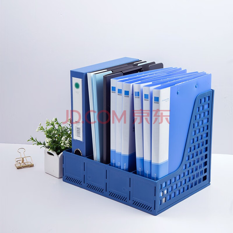 商品相册:得力 (deli) 文件框33777四联文件框文件栏文件架 桌上书立架 办公文件夹收纳盒桌面整理置物架 蓝色第