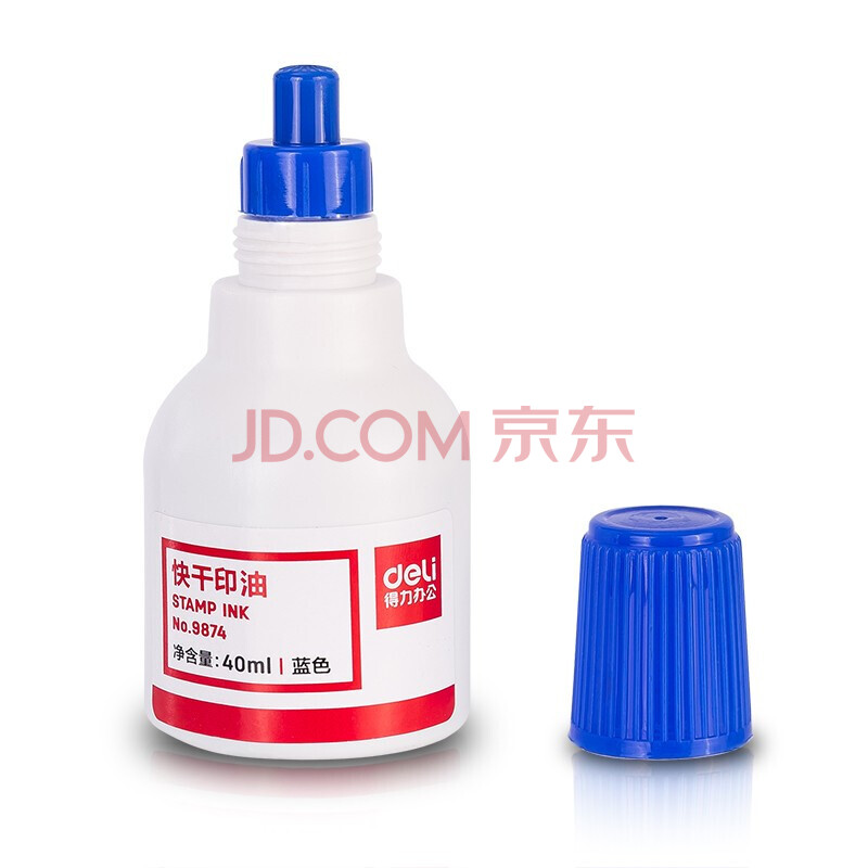 商品相册:得力(deli)印油原子印章印油 快干清洁印泥油印油 财务办公印台印泥40ml 9874 蓝色 6瓶装第
