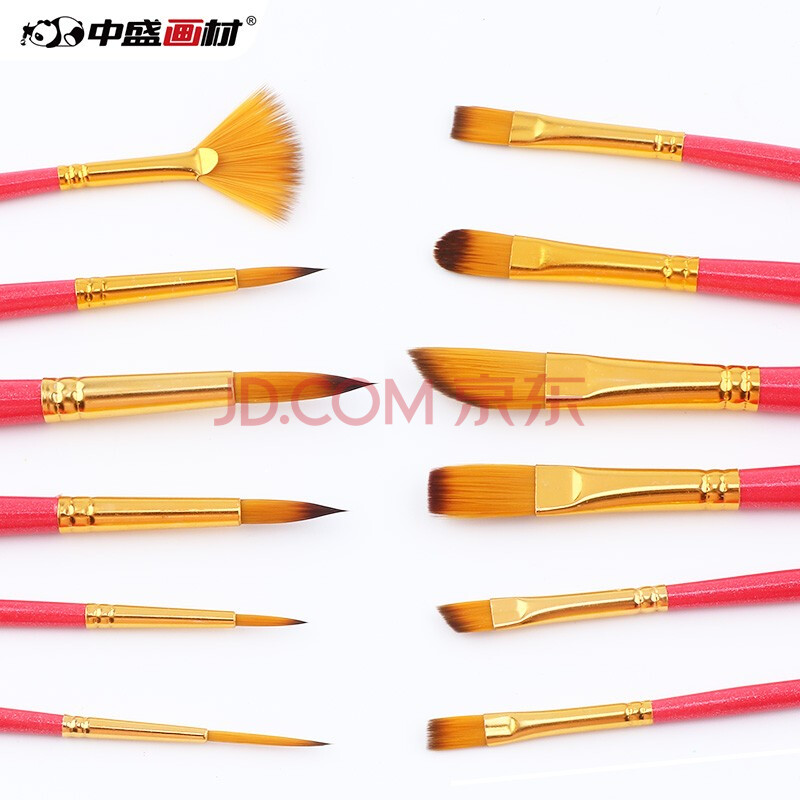 商品相册:中盛画材(transon)12支水粉笔套装尼龙多笔头画笔刷圆头扇形排笔油画丙烯颜料专用笔速写马克笔绘画第