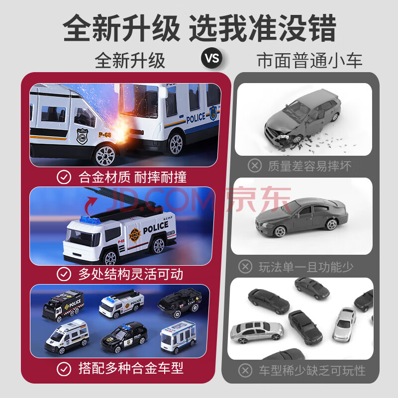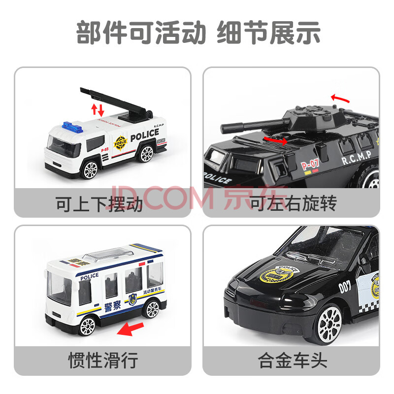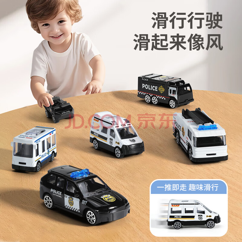 商品相册:恩贝家族儿童合金警车玩具车套装1-3-6岁男孩汽车模型消防车仿真生日礼物第