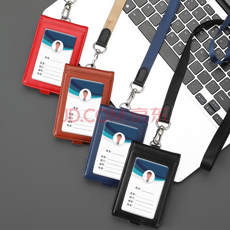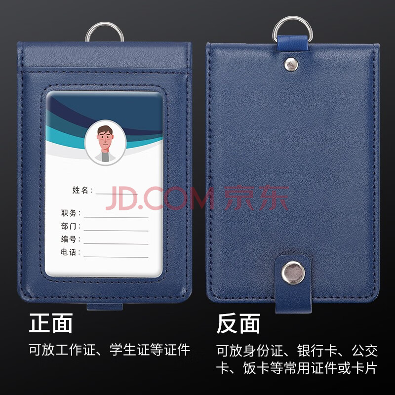 商品相册:嘉然恒真皮工作牌企业员工胸牌证件卡套带收纳卡位挂脖牌会议出入证工作证套牛皮材质可定制 竖款蓝色第