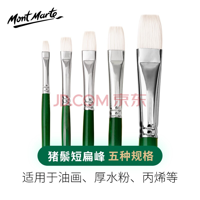 商品相册:蒙玛特(Mont Marte)油画笔5支 平头画笔套装猪鬃丙烯颜料短扁峰2号6号10号16号24号画笔V SX-MCG0093-97速写素描第
