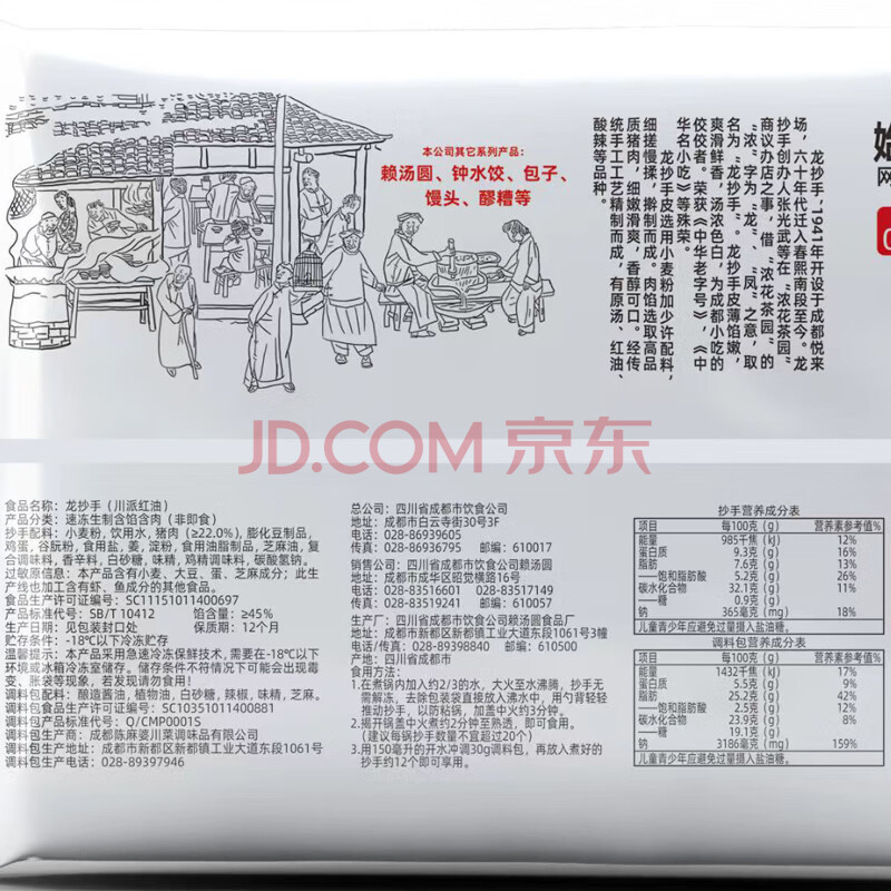 商品相册:赖龙抄手(川派红油)230g*2袋(24只 带料包 手工制作 云吞)第