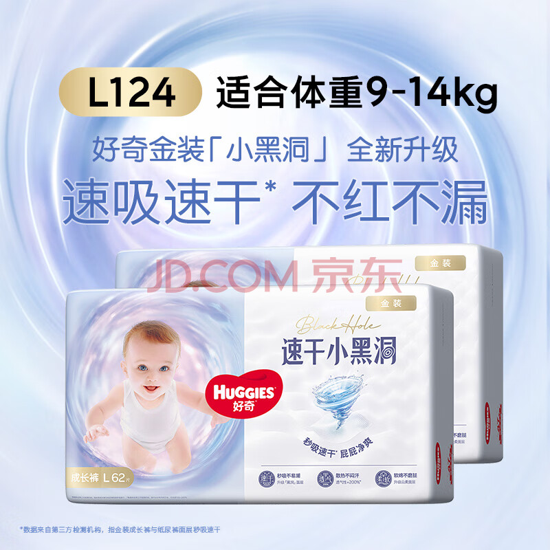 商品相册:好奇(Huggies)金装拉拉裤L124片(9-14kg)尿不湿【速干不易红】第
