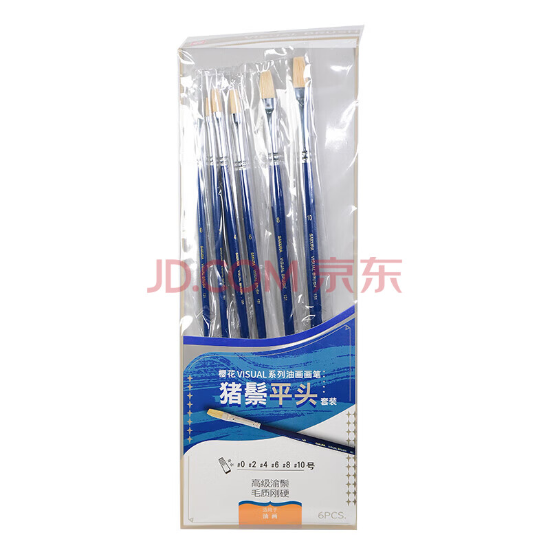 商品相册:【全网低价】樱花(SAKURA)猪鬃油画画笔平头套装水粉画水彩丙烯颜料美术画笔学生初学者美术专用 VB13101-6P美术写生第