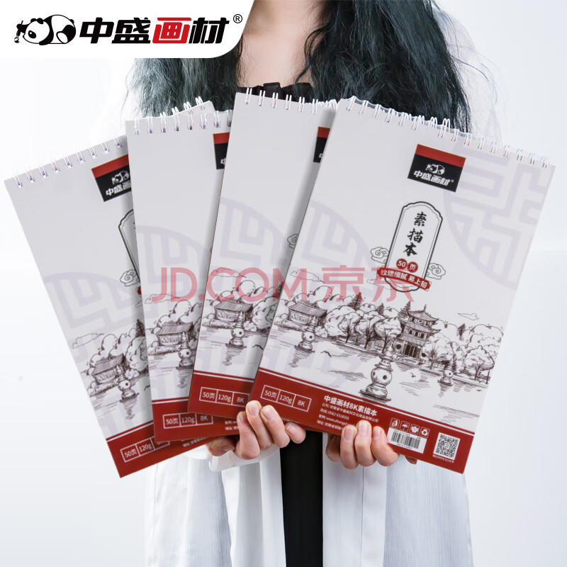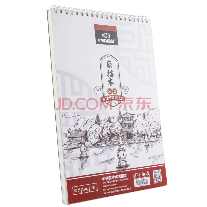 商品相册:中盛画材 加厚8开素描本8K图画本画画速写本子素描纸本彩铅绘画本空大白纸儿童涂鸦八开专业美术生手绘螺旋美术写生第