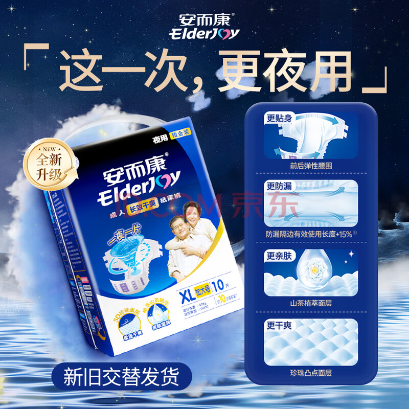 商品相册:安而康(Elderjoy)长效干爽成人纸尿裤XL10片臀围>110cm成人尿不湿老人卧床夜用第