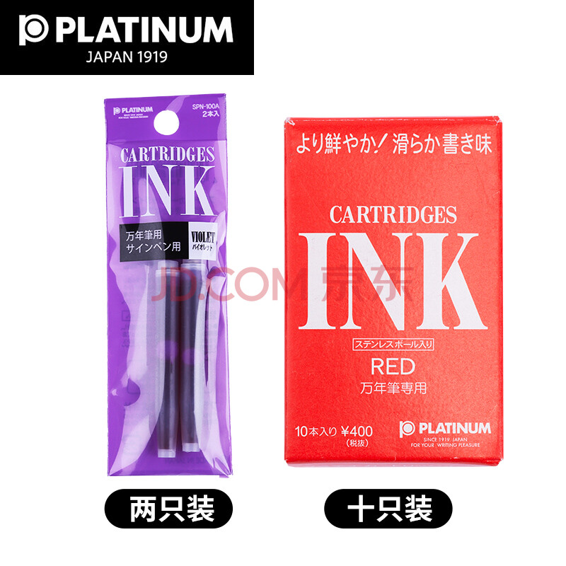 商品相册:白金(PLATINUM)钢笔墨胆SPN-100A染料型不堵笔墨水囊 2支装 蓝黑色第