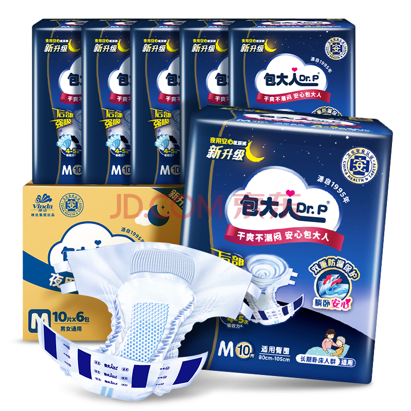 商品相册:包大人(Dr.P)夜用型成人纸尿裤M60片(腰围:70cm-110cm)老年人产妇尿不湿第