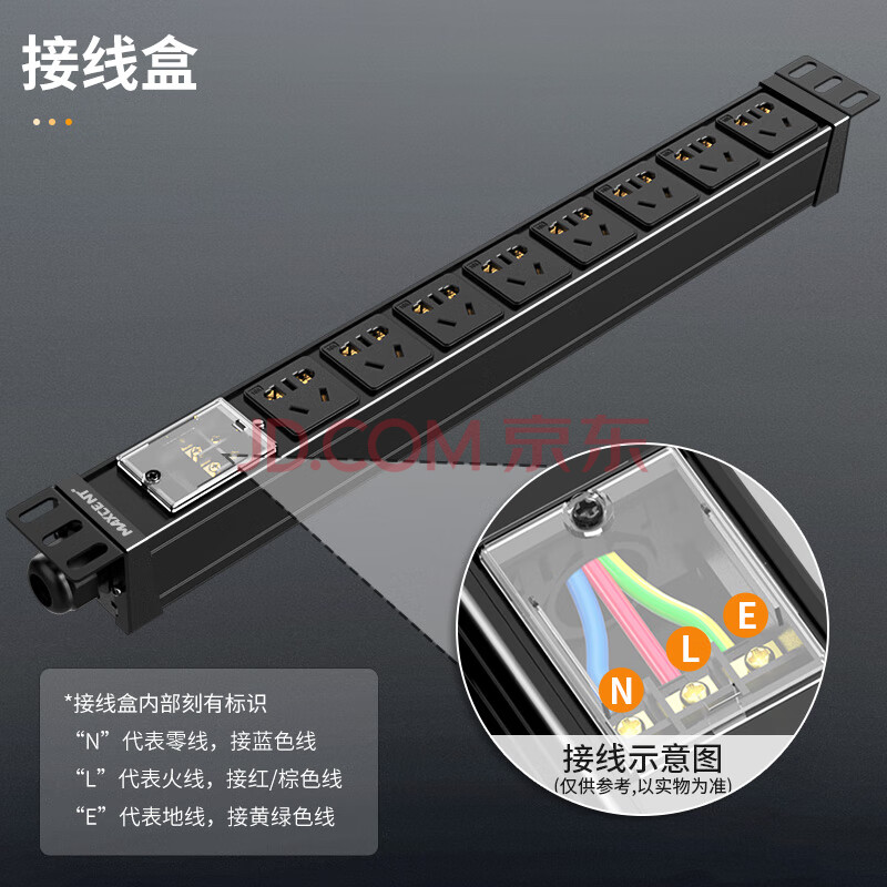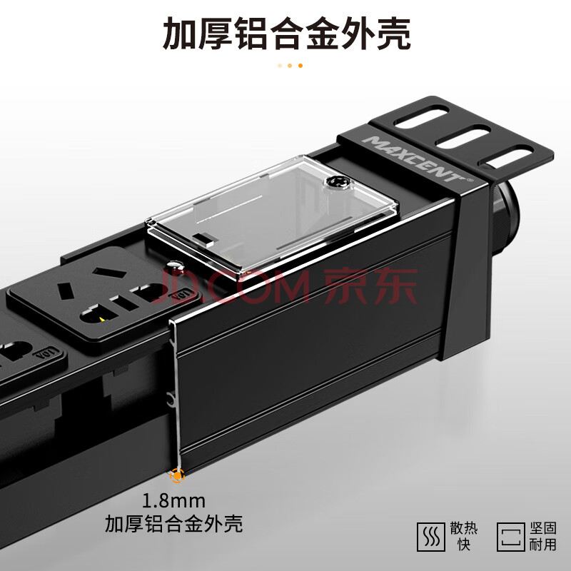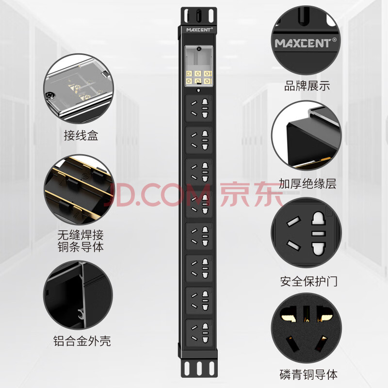 商品相册:麦森特(MAXCENT)PDU机柜插座8位16A输入10A输出大功率插线板新国标工业插排新国标五孔自接线盒不带线MC086BD第
