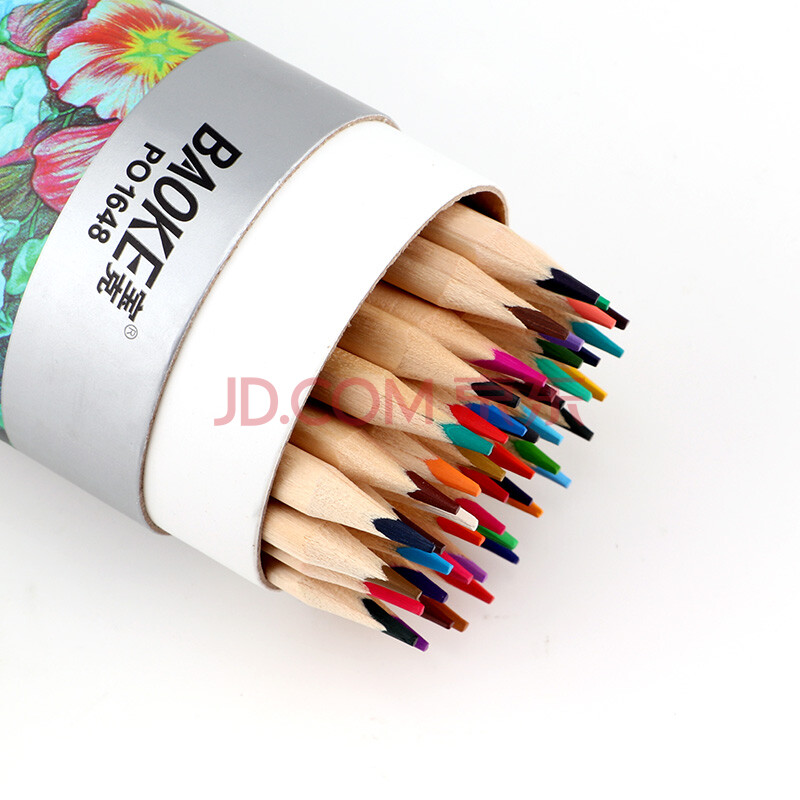 商品相册:宝克(BAOKE)PO1648原木油性48色三角杆彩铅彩色铅笔填色彩笔绘画笔纸筒装第