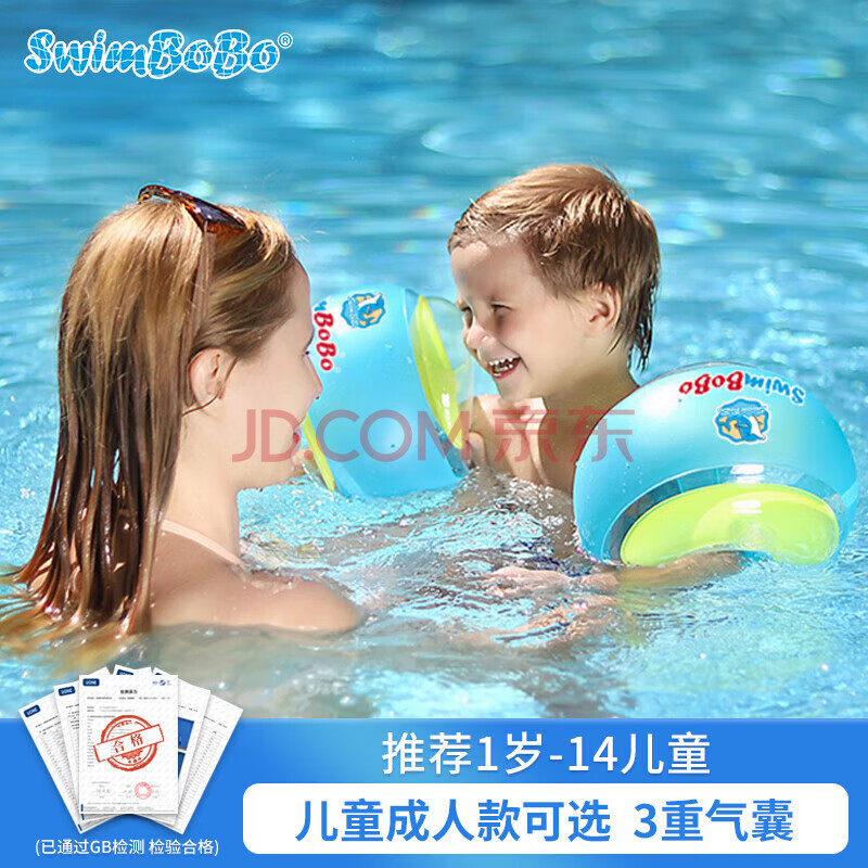 商品相册:swimbobo儿童游泳手臂圈浮袖 游泳装备蓝色独立多气囊水袖漂 BO1200L第