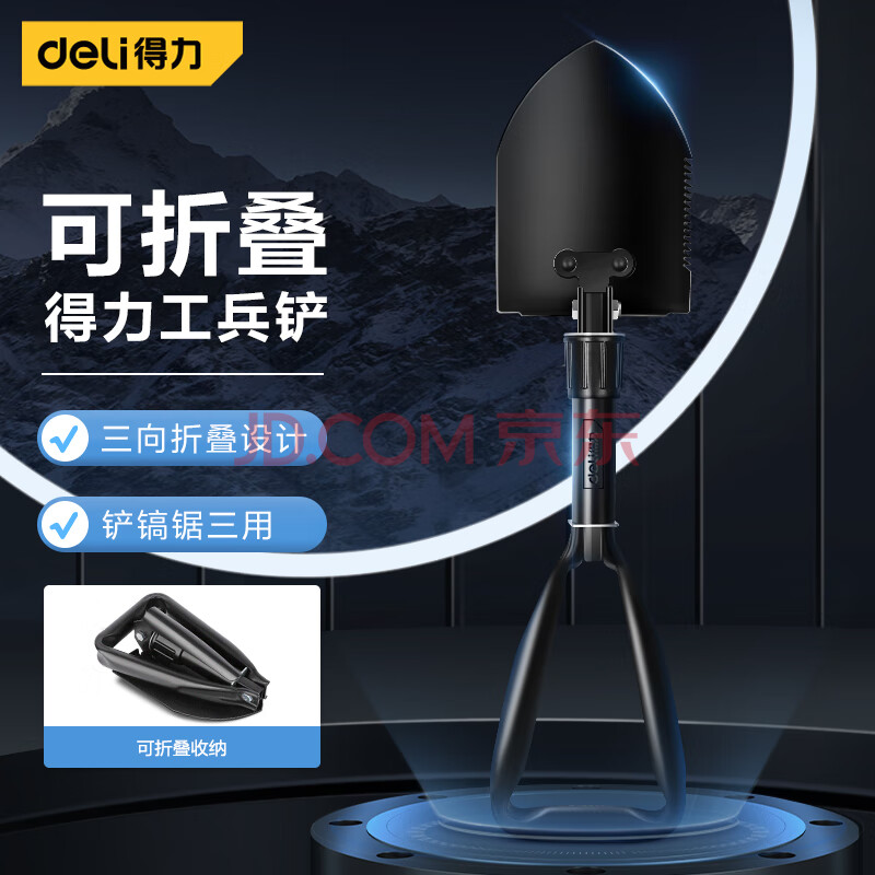商品相册:得力(deli)工兵铲兵工铲子折叠式多功能户外锹迷你车载装备钓鱼铁锹锰钢第