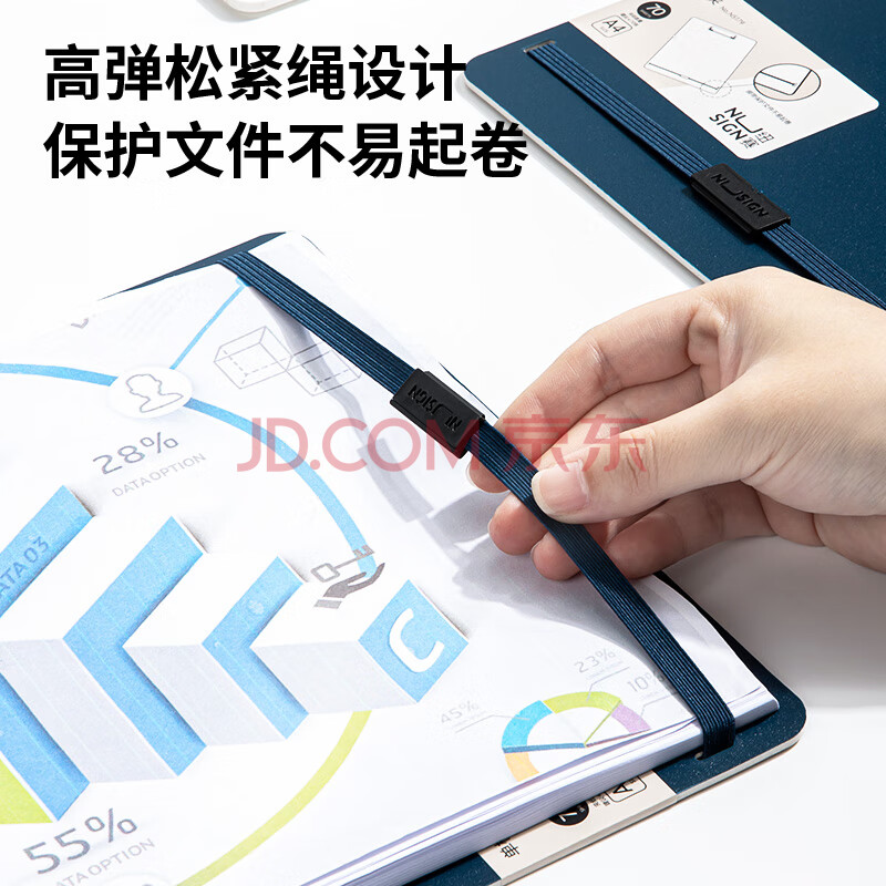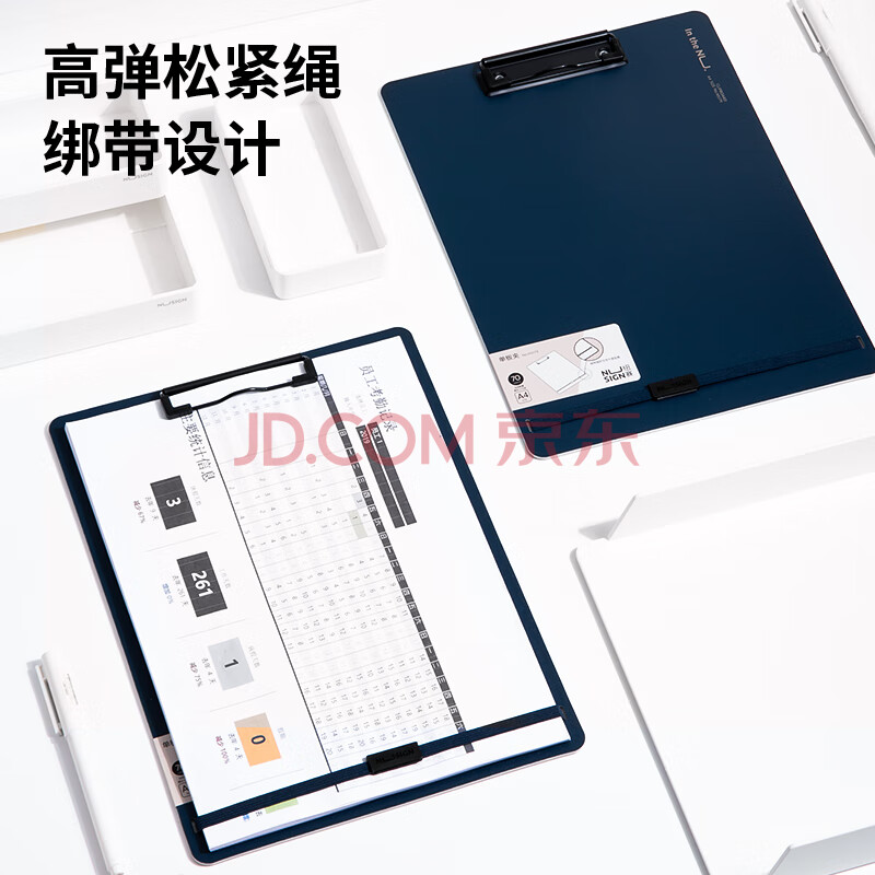 商品相册:得力(deli)A4书写文件板夹金属强力夹 简约硬质会议夹合同签约 办公用品学生写字垫板绑带加固 海军蓝NS179第