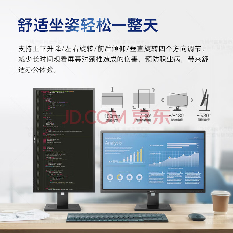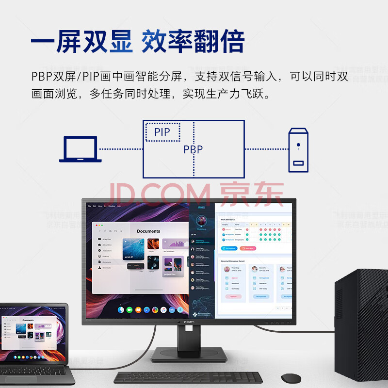 商品相册:飞利浦(PHILIPS)31.5英寸 2K 办公显示器 IPS PBP分屏 TUV低蓝光护眼 智能双芯 升降旋转 电脑显示屏 325B1LN第