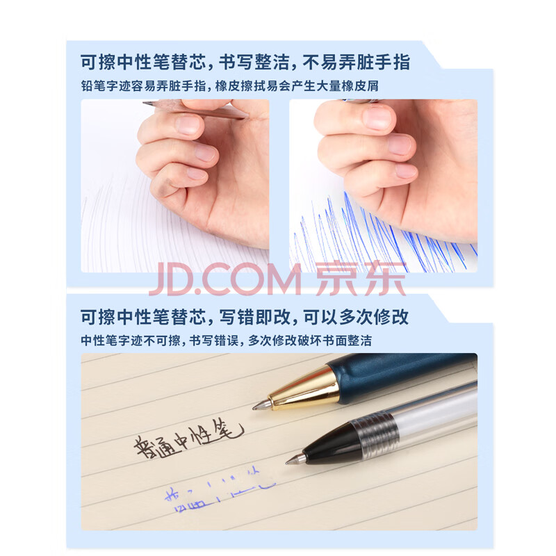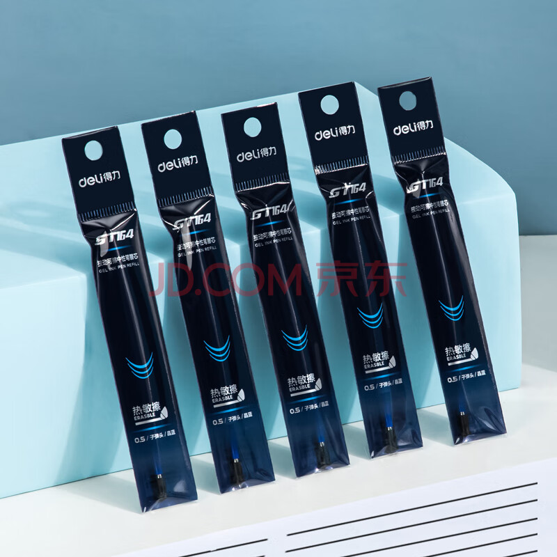 商品相册:得力(deli)【热门商品】可擦按动中性笔芯 0.5mm子弹头学生中心笔签字笔水笔替芯 晶蓝 20支/盒GT164第