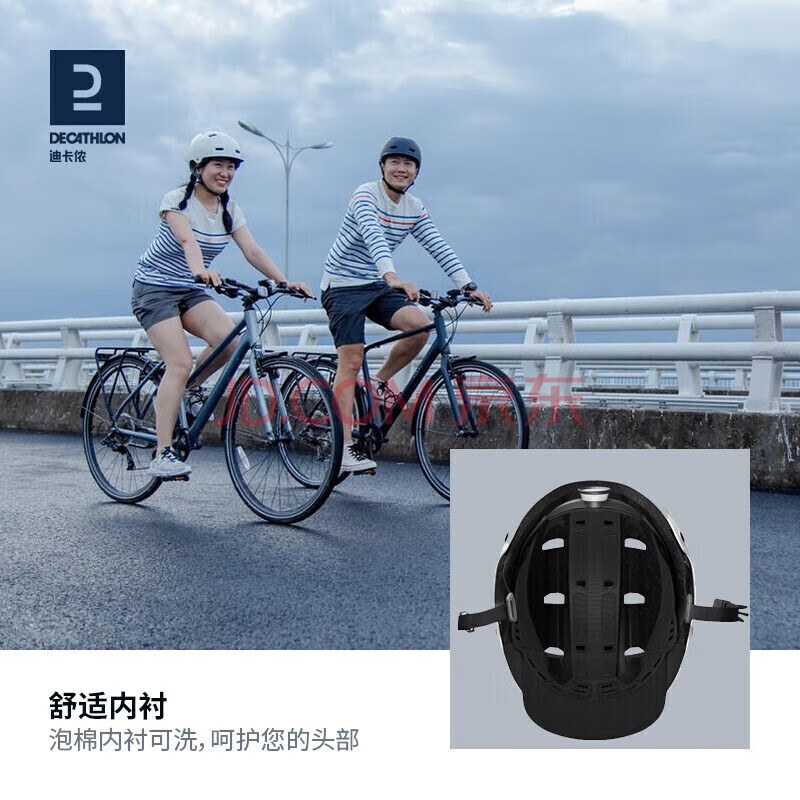 商品相册:迪卡侬自行车头盔骑行装备男女安全帽学生-黑色(56_61cm)L-562045第