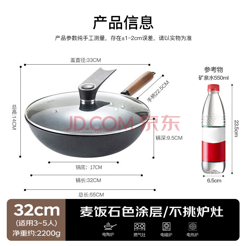 商品相册:美厨(maxcook)不粘炒锅 精铁带可立盖带木铲32cm不粘涂层 燃气电磁炉通用MCC606第