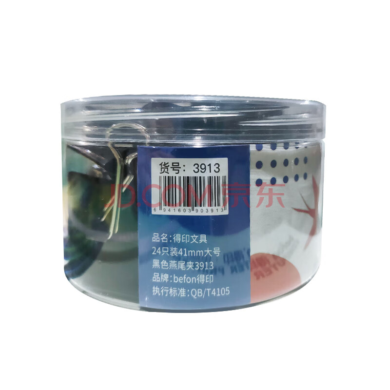 商品相册:得印长尾夹24只41mm大号2#燕尾夹黑色多规格纸票夹金属铁夹子票据单据小夹子办公用品24只/筒 3913第