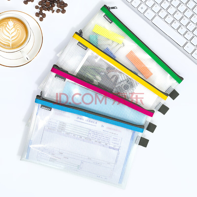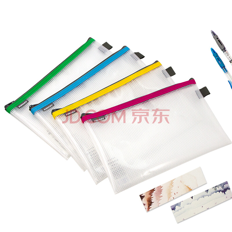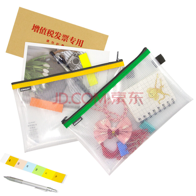 商品相册:金得利增值税专用拉链袋票夹包加厚磨砂网格透明防水大容量文件袋资料袋财务票据收纳4色随机1个FB8725第
