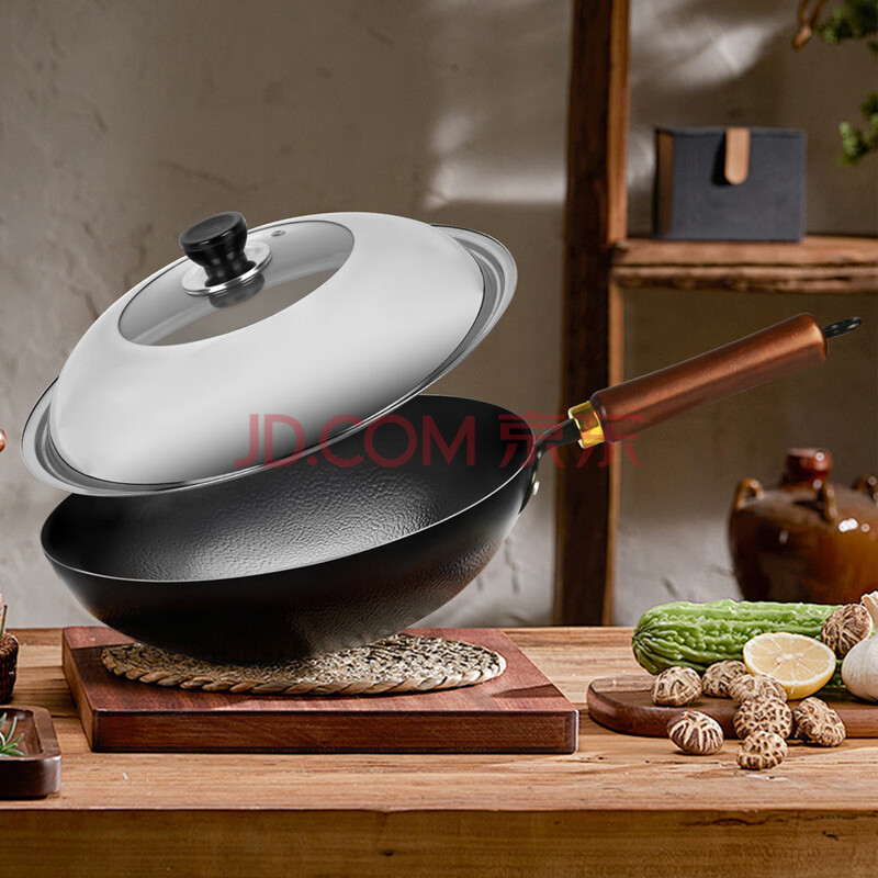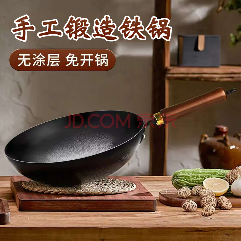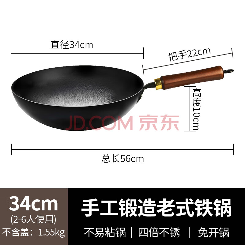 商品相册:鑫一帆炒锅手工锻打铁锅无涂层物理不粘家用圆底燃气炉炒菜锅 34厘米第