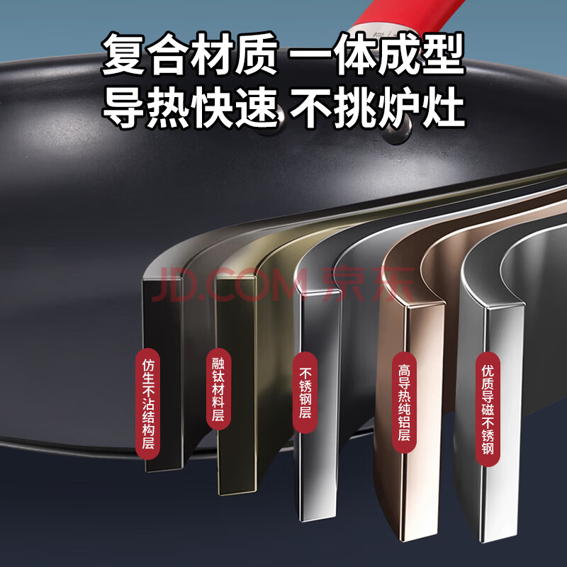商品相册:欧乐菲(OLOFE)0涂层钛不粘锅平底深炒锅不粘镜面三代钛无涂层健康烹饪炒锅32cm第