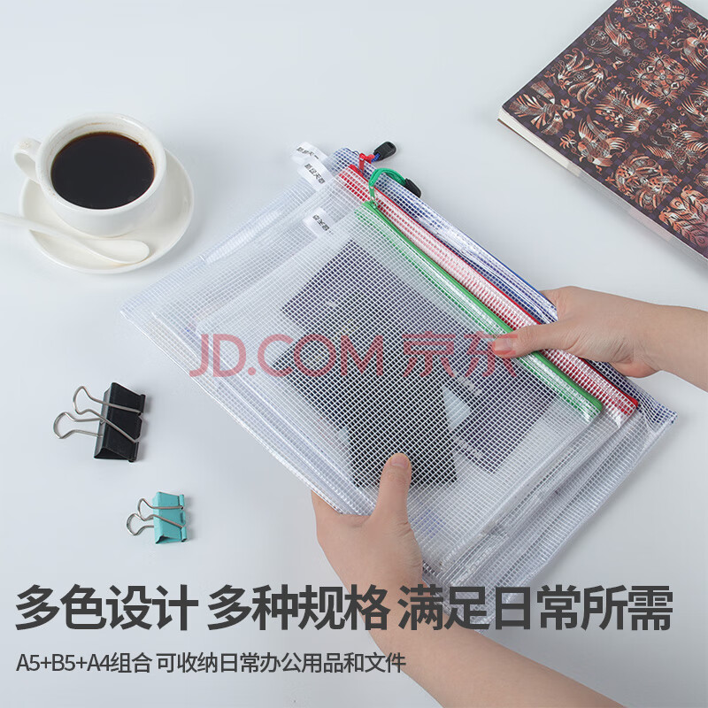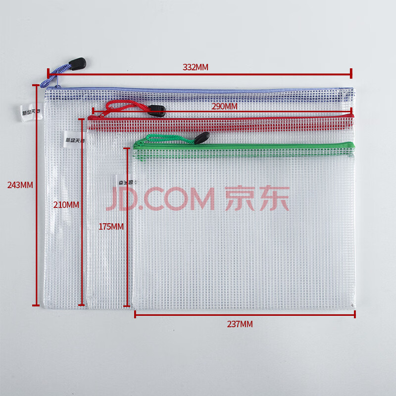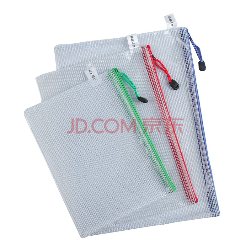 商品相册:天章办公拉链袋透明文件袋A4+B5+A5组合网格袋3个装防水资料袋档案收纳学习资料考试科目文件包红绿蓝第