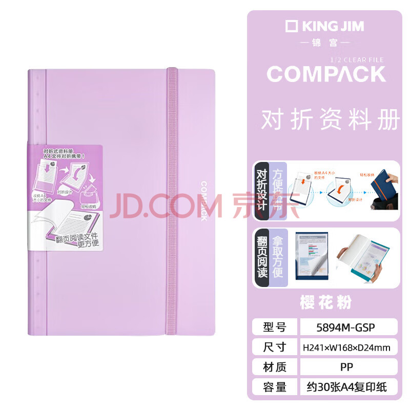商品相册:锦宫对折资料册A4试卷整理孕检收纳产检报告病例病历收纳樱花粉5894M-GSP第