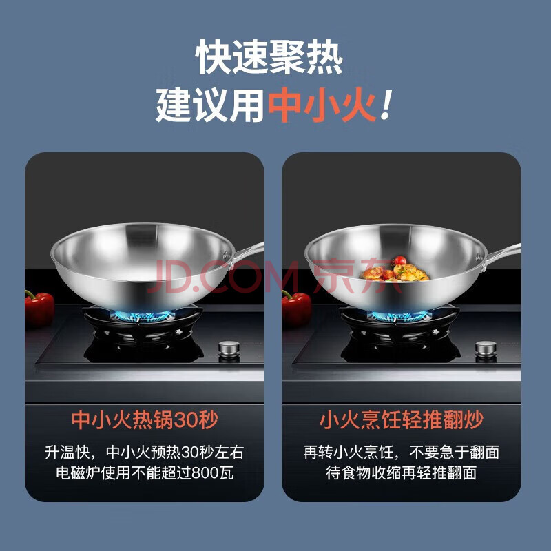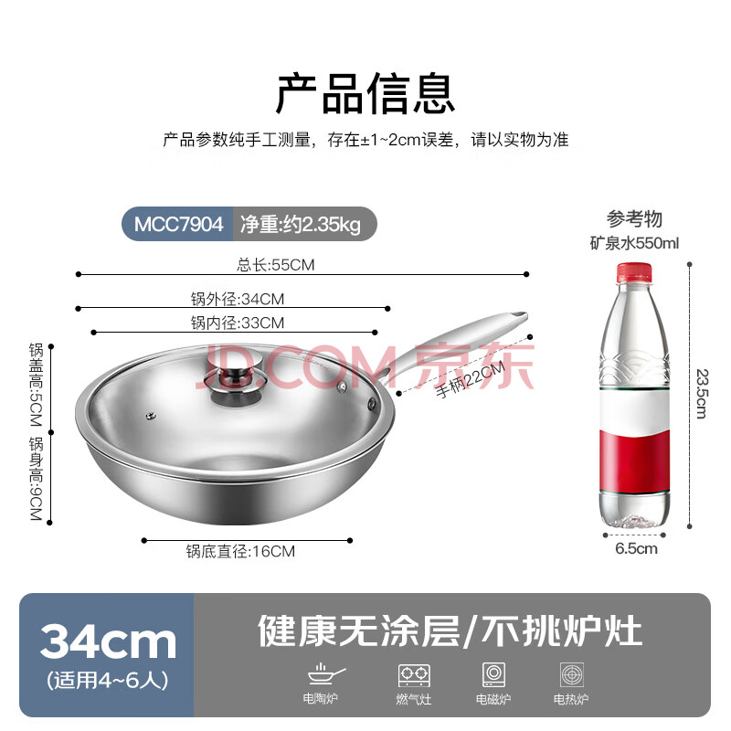 商品相册:美厨(maxcook)304不锈钢炒锅 带盖锅具34cm 三层钢锅 电磁炉燃气炉通用MCC7904第