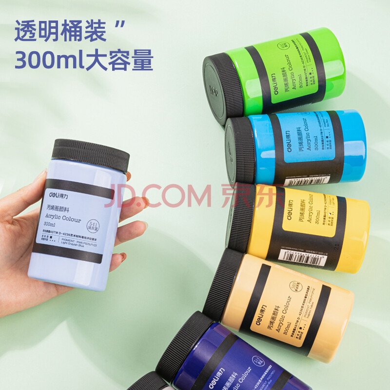 商品相册:得力(deli)淡黄丙烯颜料300ml大容量墙绘手绘DIY画画DIY丙烯画大桶装大瓶美术绘画73875美育工具第