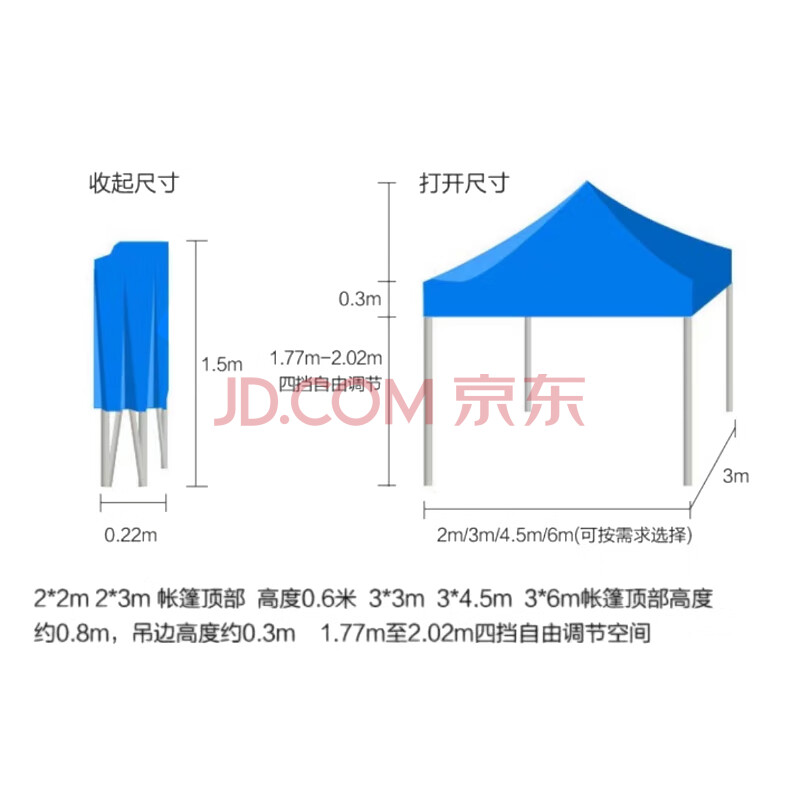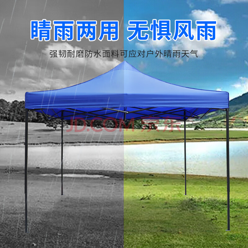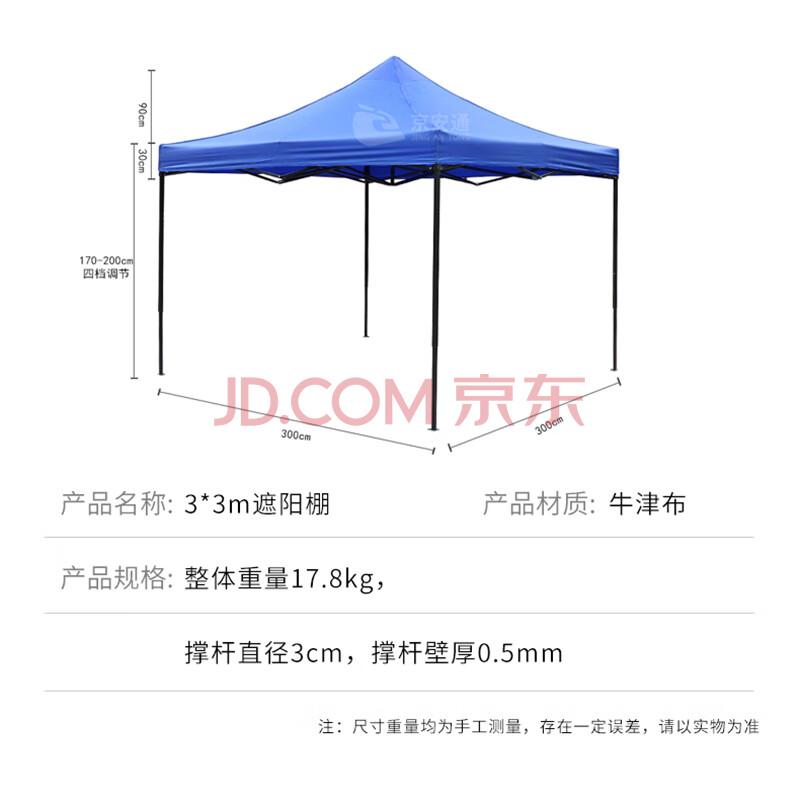 商品相册:京安通 雨棚遮阳棚 户外加厚遮阳折叠式四脚太阳伞停车棚 3*3m蓝色第