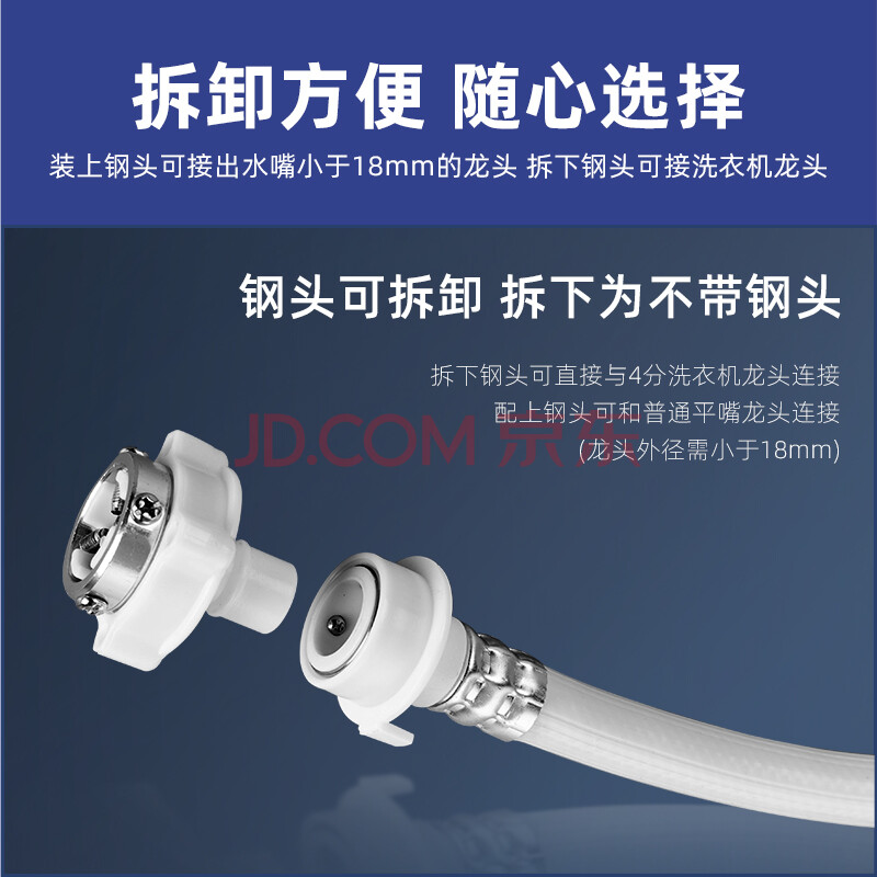 商品相册:贝石 洗衣机进水管 加厚通用滚筒波轮洗衣机进水管加长管接水管上水管注水延长软管接头配件 白色2米第