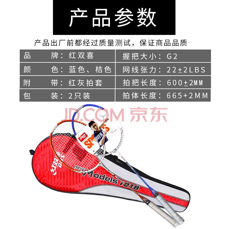 商品相册:红双喜(DHS)DHS羽毛球拍对拍儿童成人初学双拍羽拍套装含羽球手胶1018第