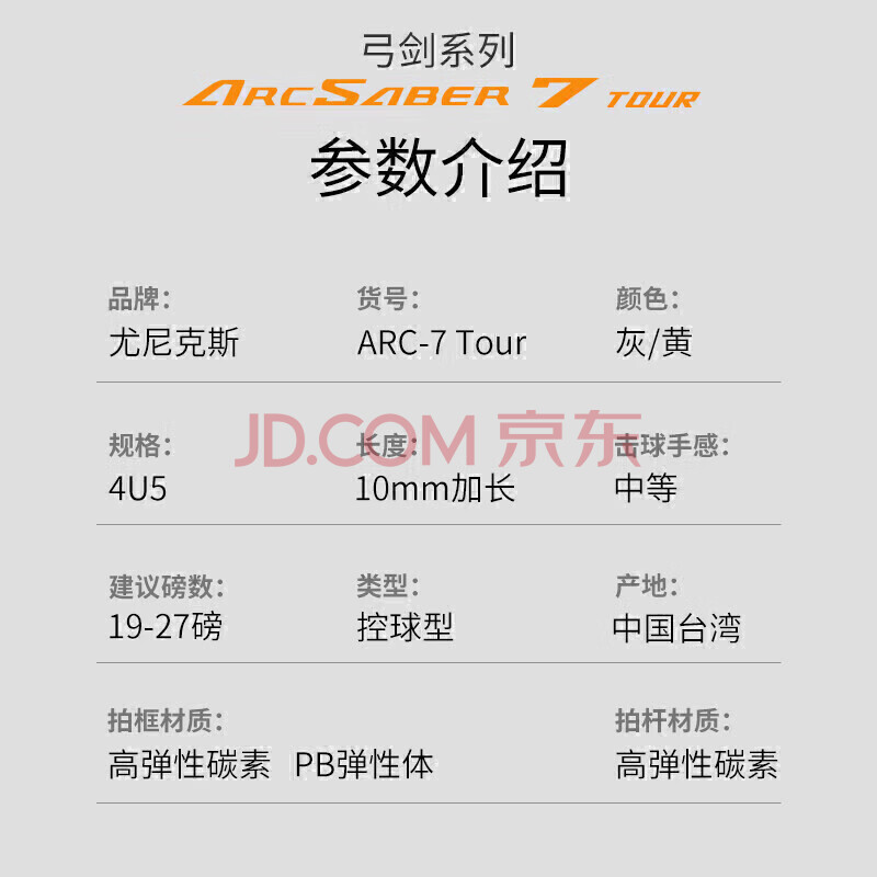 商品相册:尤尼克斯(YONEX)羽毛球拍全碳素单拍精准控球ARC7TOUR灰黄4U5空拍附手胶第