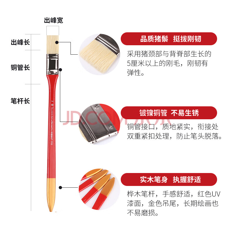 商品相册:中盛画材1#长杆猪鬃宽笔刷油画刷底纹笔刷猪鬃排刷底纹板刷子丙烯画笔水粉笔美术手绘画墙绘美术写生第